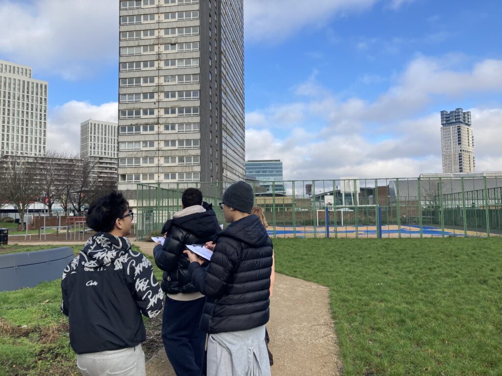 Stratford provided an ideal location for the study, with its blend of regenerated spaces, residential areas, commercial districts, and major transport links. Students examined how investment and redevelopment have influenced quality of life for residents and visitors, and how different parts of the area compare in terms of liveability.